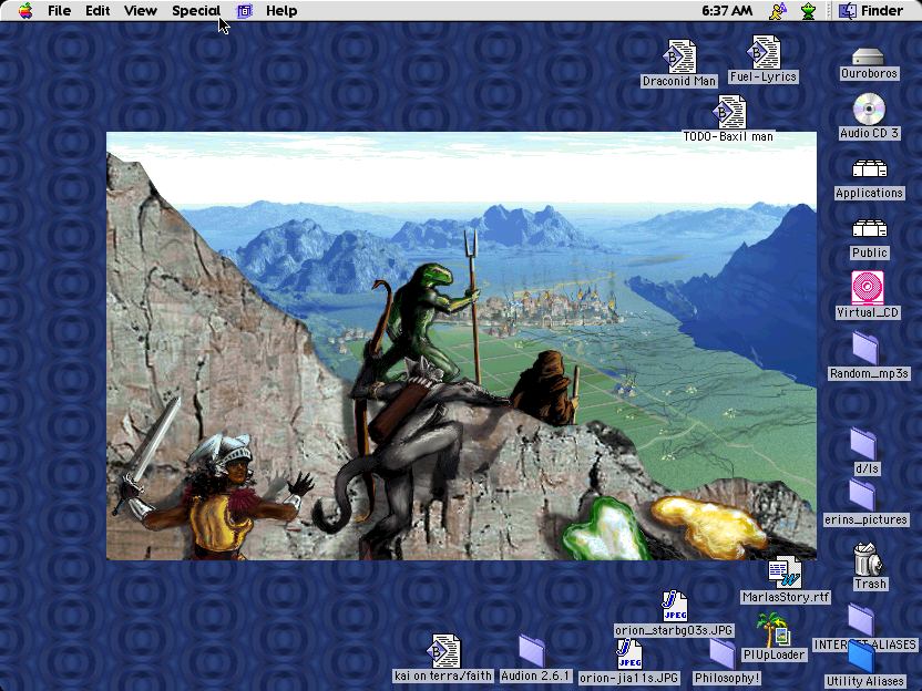 February 9, 2002 ... Wow! I can hardly believe it. We've actually reached the end of ... BLOG WEEK! ... and somehow I haven't driven away all of my readers! It's time, I think, for a self-congratulatory pat on the back and a little bit of nostalgia. I can go back over the highlights of the week -- like the running gag about The Conspiracy of me out to get me, and that dream about petrophiliac hermaphrodites. So, let's just set the Way-Back Machine back seven days ... (*fiddles with controls*) ... and do a recap. ... ... Should the machine be smoking like that? ... One second, folks; it looks like we're experiencing technical difficulties. ... Oh, wait. Here's the problem -- I twisted the wrong knob. Ha! Ha! Seven years instead of days. Silly me. I'll just fix that, and ... Oh, crap, it's stuck. Where's the off switch on this thing? ... Too late! IT'S ACTIVATING!!! AAAAAAAAIIIIIIEEEEEEEE!!! wwwwhhhhhhhhhrrrrrrrrrmmmmm GGGGGcrnk kerTHUNK bbzzzzzzzzzzzzzzzzPHUT! ... My stars. Okay, so, apparently, today I'm going to be talking about who I was at 17. The Way-Back Machine has replaced all of my standard web research material with the contents of eight floppy disks that have been sitting in a box in my room since high school. And I'm finding it pretty creepy. Not creepy like a respected scientist who spends years stalking you, merely creepy like remembering that you locked your dog outside two weeks ago to punish him for clawing at the curtains. There has been one bright spot in all of this, which is that I have discovered I was a much more diligent programmer than I gave myself credit for; over the course of high school, I turned out (among other diversions) five games and two surprisingly full-featured applications -- a music composer and a pseudo-instantiation of the "Dissociated Press" I tweaked readers with in yesterday's entry. On the other hand ... my writing ... well ... geuugh. I have been called "a damn good writer", and having spent the last eight hours poring through my body of high-school work, I think that compliment (to the extent that it is true) is testament to nothing more than the improvements that time and persistence have made. There is a world of difference, for example, between "But The Garden Has No Apples" (which I don't even think is all that good; I'll probably be shuddering at it in another seven years) and "Sir Lucky". Oh, for the days when I thought that "characterization" meant giving different names to people! The days when a gripping action sequence was all that was necessary to establish audience identification with the main character! That theme seemed to drive a great many of my early stories, actually, including the novella that I finished at 16. ("Alien Nightmares" is a bit out of the scope of this retrospective, but maybe I'll share it. Someday.) Nowhere is this more obvious than the would-be science-fiction action-movie story called "Gun Control". Oh, for the days that I could talk with a straight face about pistols having "ammo feeds" -- and the range to outshoot sniper rifles! I don't want to spoil the surprise ending, but suffice it to say that it could charitably be viewed, in retrospect, as existentialist. Fortunately, I at least had the grace not to get stuck in a rut. For all my obliviousness at those inconsequential details like "characterization" and "plausibility," I still had a fair grasp of language and a little talent at the construction of the craft. Most of my non-fiction at the time tended to be in pursuit of schoolwork, as one would expect, but I still turned out a few pieces like "Thoughts of a Dragon in Retail." Surprisingly, very little of my writing tended toward the self-absorbed; this, however, was the exception. I like many of the descriptive passages, though, so it wasn't a total loss. (For reference, I wrote this story after I had started thinking of myself as a dragon, but before finding the dragon community. Explains a lot, I'm sure.) I'll leave you all with something to wash the bad taste of the previous three stories out of your mouth with -- "Echoes". What you will read was actually intended to be the wrapper around a story that undoubtedly would have been of as dubious quality as its predecessors; however, I never got around to writing the story itself (save for a few paragraphs that aren't nearly as much of an embarrassment as the other links I've posted), and the ambient prose itself survived fairly well. At any rate, let me close off BLOG WEEK! with a Link Of The DayTM to gently remind you all how much worse it could be. (I've already plumbed the depths with observations on the golden quality of the bottom 1% of writing, and mocked one author who went through his teens without learning the lessons I did, so I won't cover that ground again.) Today, I will spotlight a very interesting piece about the mythology of street kids, to remind everyone that while I may have been a poor writer as a teenager, at least I wasn't a poor writer with oddball spiritual delusions. ... Uh, actually, never mind. One way or the other, though, today's Link Of The DayTM: Myths Over Miami!