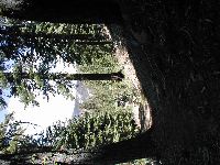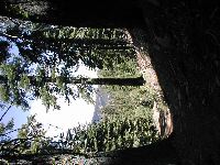 fallen tree nestled in the crooks of its comrades' trunks. |