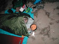 ![]() P7300055.JPG More mosquito armor: Kady, still nursing raw, red, pre-blistered feet, just decided to turn in early and let her sleeping bag protect her. |