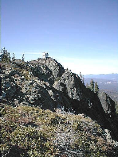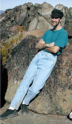 ... which made sense on a practical level, because of their sheer durability factor. And it made a great deal of sense when we ended up doing a significant amount of rock scrambling and some actual climbing. (FC estimated our toughest climb of the day, a free climb, as a 5.4 to 5.5 -- i.e., no ropes or protective gear, on an exposed rock face with moderately difficult hand- and foothold positions.) You wouldn't believe what granite does to fabric. Once suited up, we hiked up Mills Peak --