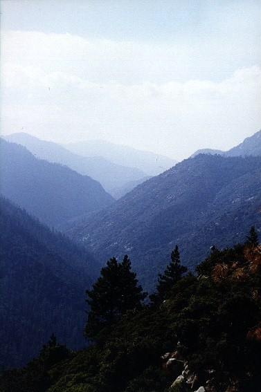 The view to the west of Kings Canyon, as the river continues its inevitable descent toward the Central Valley and, ultimately, the Pacific Ocean. The day was lost in haze and the hills aspired to do likewise. Glorious.